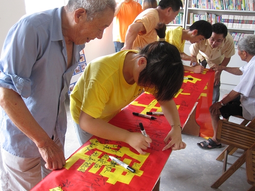 因此,志愿者们与钟管村村委携手组织了一场号召村民丰富绿化自己住宅来评比村里“绿色家园”的活动。6月30日上午9点,“绿色家园”环保齐行动评比活动在中心村里的青年之家启动。自此,历时将有一个多月的评比活动拉开帷幕。出席活动的主要是村委代表与中心村村民代表。在启动仪式身上,村民代表与志愿者纷纷在横幅下写下对本次活动的祝愿话语。此次活动举办的目的是鼓动村民全员参与环保行动,在活动中提高村民环保意识和自身素质,美化村里的环境,融洽村里邻里气氛,形成良性竞争,打造美丽和谐的新农村。此外,志愿者们还为村民们组建了一个QQ群,为村子设计了一个博客,以期达到增进联系与宣传推广的作用,志愿者们还与当地的老年乐园联谊,为那里的孤寡老人带来欢声笑语。