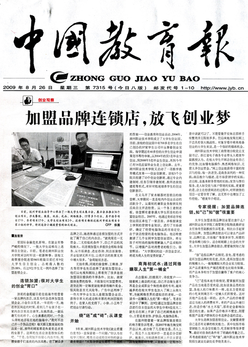 连锁0601走出九个“小老板”受到《中国教育报》关注