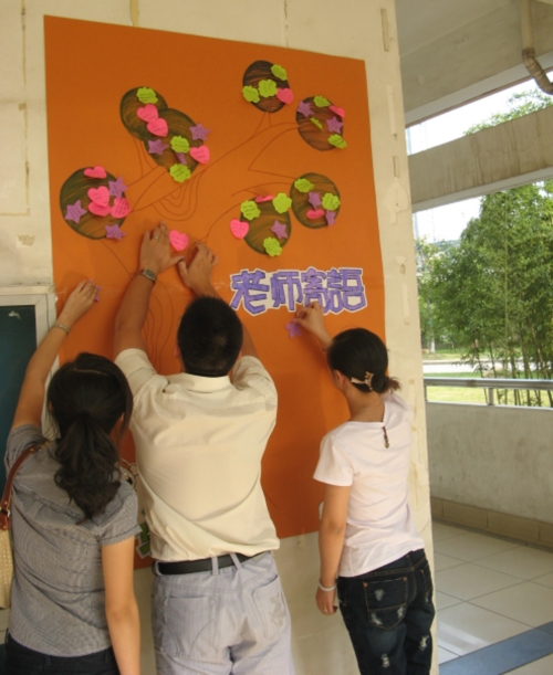“献此生无悔无怨只为满园桃李、燃自己勤勤恳恳终育四海英才”,“只要不放弃努力和追求,小草也有点缀春天的价值 ”……今年教师节的主题是“祖国的未来与人民教师的使命”,在以往教师节中,常常是学生向教师赠送礼物,而今年建筑与艺术分院的老师纷纷亲笔书写“教师心语”,通过寄语墙赠送给学生,小小的卡片传递着教师对学生的关爱与期望,令同学们深受感动。