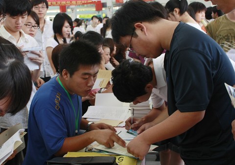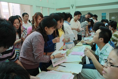 9月19日,圆顶广场中人声鼎沸,2009级新生和家长们在志愿者的引领下,有序地前往各自的班级报到注册。