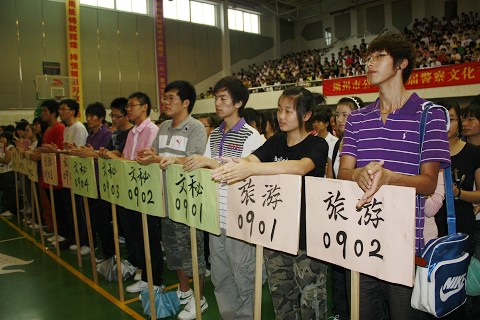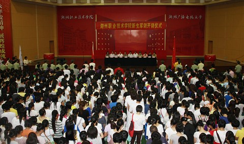 9月21日上午,2009级新生军训动员大会在校艺体馆隆重召开。校领导胡世明、陈松源、吴海燕、武警驻湖某部领导和各分院书记、相关部门负责人、全体教官、班主任及全体2009级新生出席了大会。校党委副书记陈松源作军训动员,校长胡世明宣布2009级新生军训正式开始。