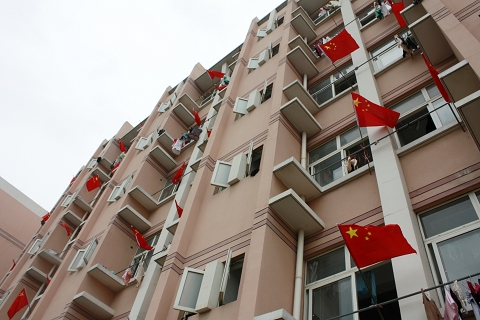 鲜红的国旗迎风飘扬,举校振奋,连日来,许多大学生纷纷自发在宿舍窗外悬挂国旗喜迎国庆佳节的到来。社区学生联合会的洪兰同学说:“从9月25日开始,我们班上一些同学就自发地在宿舍窗外悬挂了国旗,之后,其他宿舍的学生也纷纷参与进来,校园里悬挂的国旗便越来越多了。”“校园里挂上鲜红的国旗,更加漂亮,也很喜庆”广大同学表示赞同悬挂国旗庆祝国庆的方式,“看见国旗就有一种热血沸腾的感觉,全校挂上,感觉很好,国庆就在我们身边”。