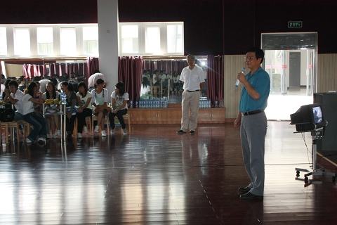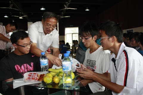 现场,校领导和老师为每个学生送上了月饼。在联欢活动中,校长胡世明代表学校,向在场的各位同学致以节日的问候,并在此向全校所有同学送上节日的问候,祝大家中秋愉快!胡校长指出,中秋佳节是一个家庭团圆的节日,虽然你们不能够回家过节,但是湖州职业技术学院是你们的大家庭,一样有家的温暖。