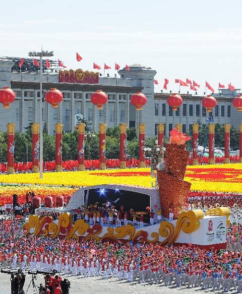 清晨,一缕阳光洒下,扫去了所有人的担心。前一晚上突降的大雨看来没有影响到首都欢庆的气氛。