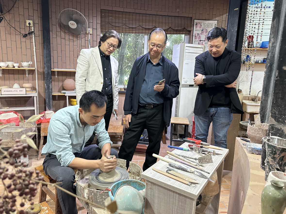 座谈会前,杨忠勇一行参观了艺术与时尚创意学院学生写生作品展和教师工作室、实训室、陶艺吧。