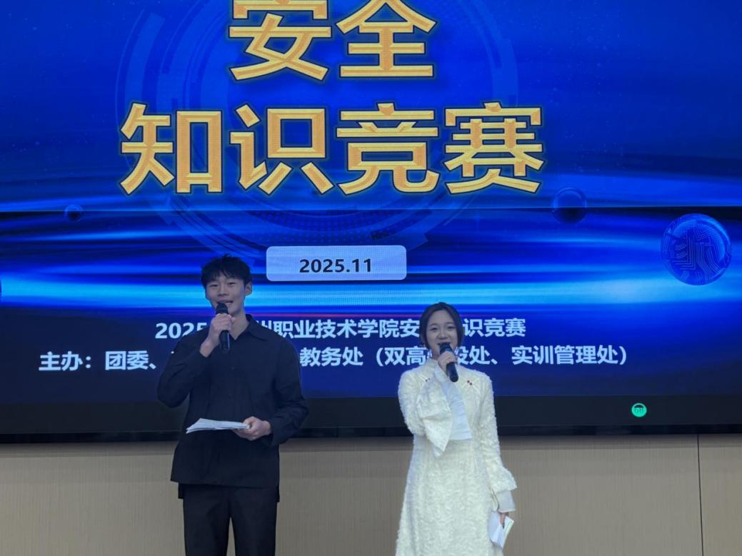 湖州职业技术学院安全知识竞赛于2025年11月27日在3号楼公共实训中心阶梯教室121室成功举办。本次竞赛由校团委、安全保卫部、教务处(双高建设处、实训管理处)联合主办,旨在通过以赛促学、以学促行的方式,全面提升学生的安全防范意识与应急处置能力,为校园安全文化建设注入新活力。