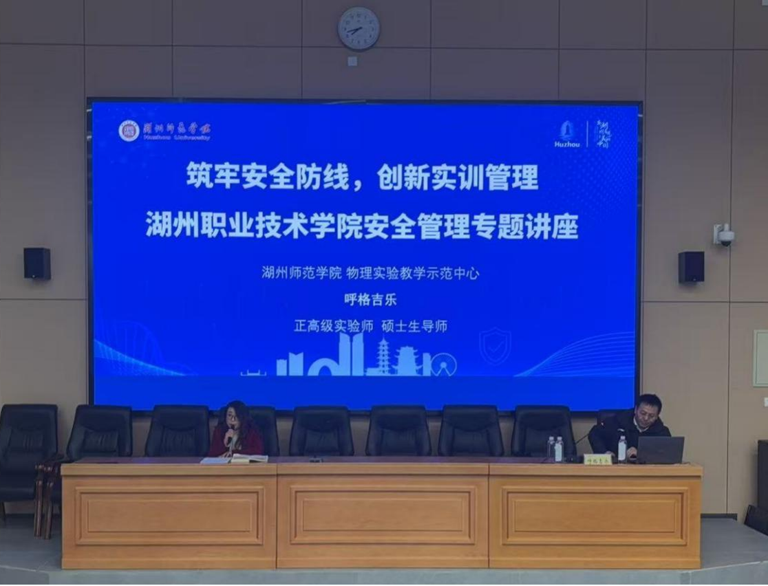 为全面提升实验实训安全管理水平,增强师生安全防范意识与应急处理能力,2025年12月4日下午,教务处(双高建设处、实训管理处)在3号楼公共实训中心阶梯教室121室举办了“实验实训室安全与创新管理”专题讲座。本次讲座特邀湖州师范学院智能装备产业学院副院长、正高级实验师呼格吉乐担任主讲,全校实训管理人员、专兼职实训指导教师及重点实验室负责人参加了此次培训。