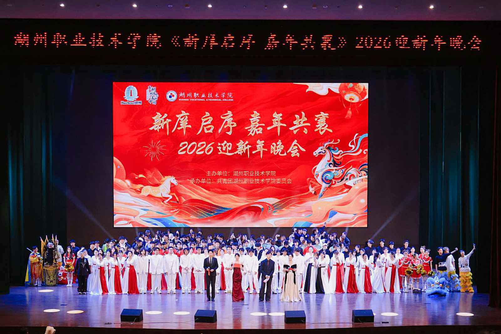 12月30日,湖州职业技术学院“新庠启序 嘉年共襄”2026迎新年晚会在大学生活动中心西塞剧场盛大启幕,千余名师生共同观看演出。